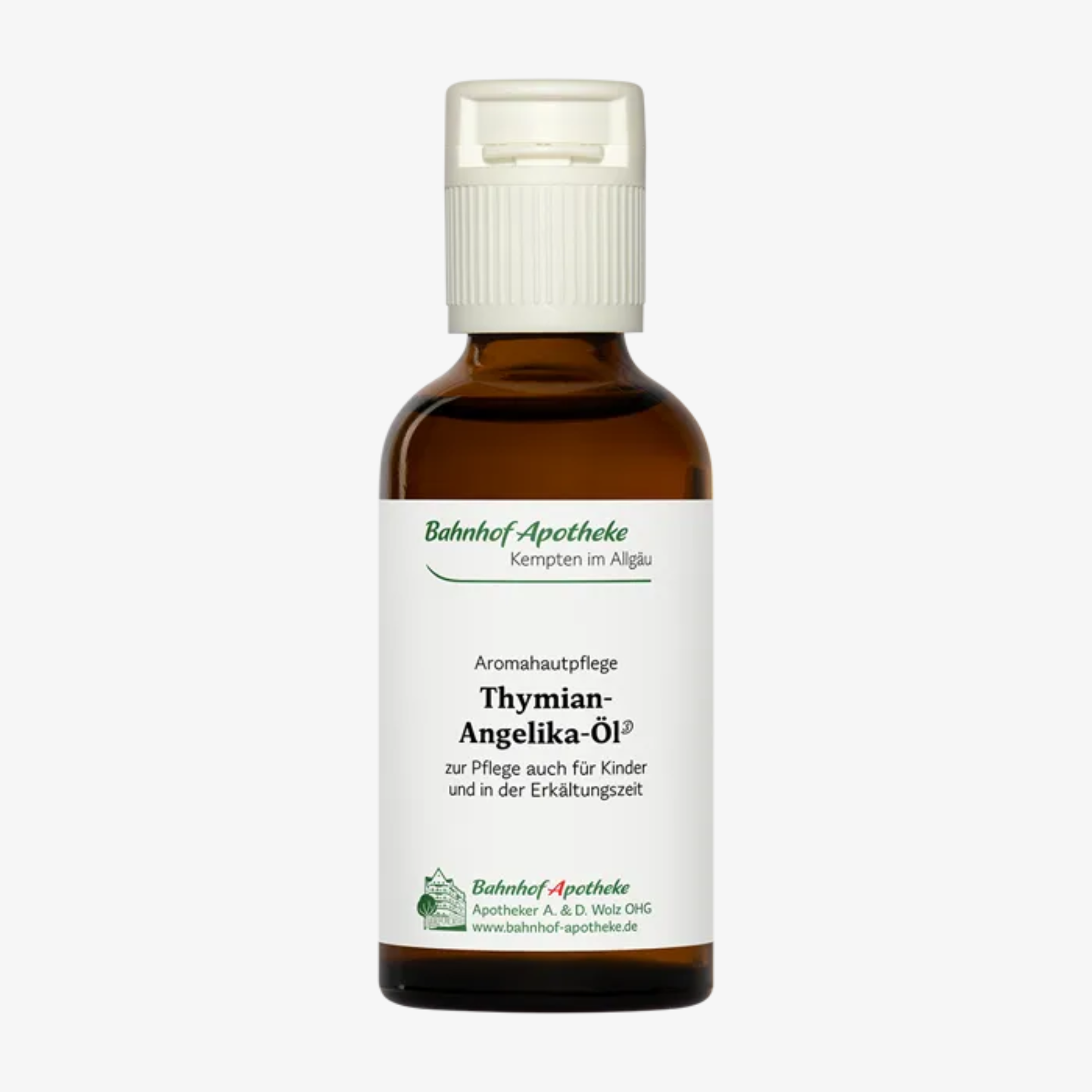 L'huile de thym et d'angélique, appliquée en massage, nourrit la peau, contribuant ainsi à réchauffer le corps par temps froid et à renforcer le système immunitaire. Elle est également appréciée en compresse ou en enveloppement apaisant.